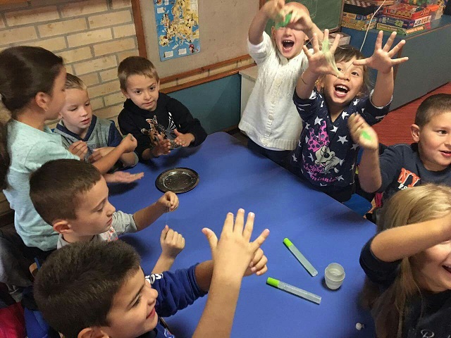 У петак, 7. октобра, организована је,такође, посета предшколској установи,, Наша радост“, у Лучанима. Наши ученици су били подељени у две групе, како би се посветили и млађој и старијој групи деце. Време је заиста брзо протекло, а кроз дружење и игру са децом, вратили смо се у оне највеселије, најбезбрижније и најсрећније дане. И док се једна група деце бавила ликовним стваралаштвом, чији је крајњи резултата био јако интересантан и оригиналан, они мало старији су уживали у посматрању и извођењу занимљивих, њиховом узрасту прилагођених, огледа. Било је задовољство гледати озарена, дечија лица, која су говорила више од хиљаду речи!