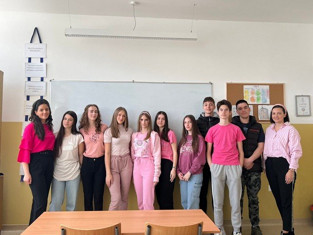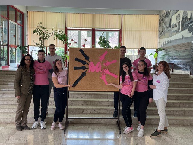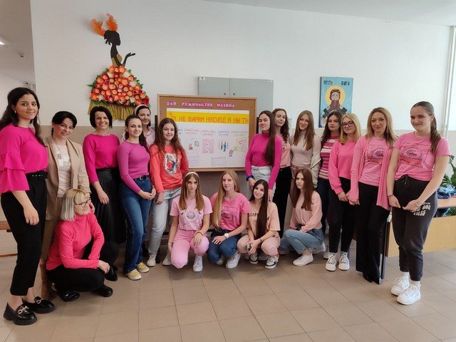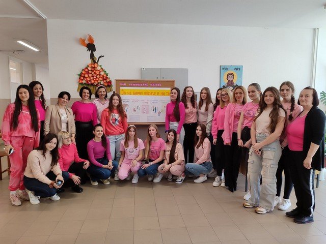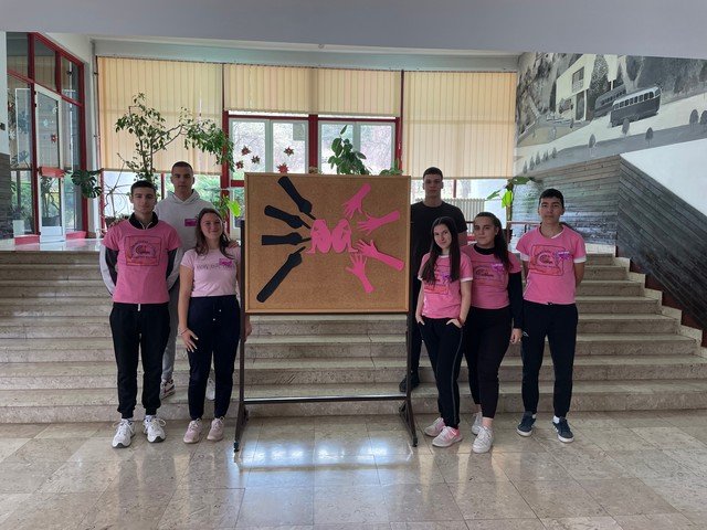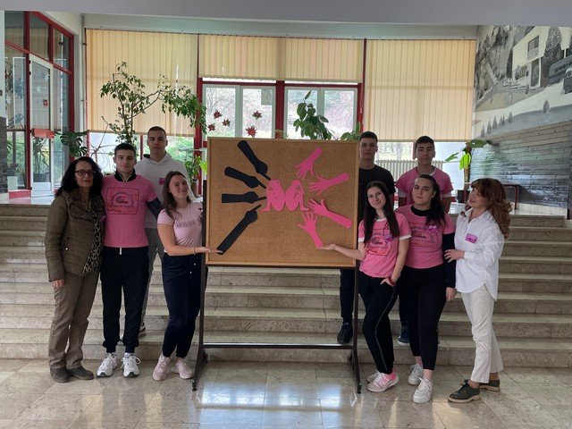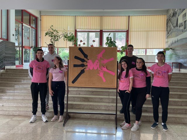 У холу школе урађен је тематски пано, који на сликовит начин приказује уважавање и поштовање различитих међу нама, као и врстама и облицима насиља у школи. Ученици су ружичасте беџеве са порукама ненасиља, поделили својим вршњацима и професорима, који су током дана носили исте као симбол подршке. Презентација филма, под називом ,, НЕ ГАЗИТЕ ТУЂЕ СНОВЕ“, изазвала је пажњу и подстакла на размишљање. Након приказа, ученици су истакли поруке као што су: