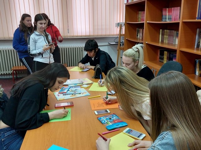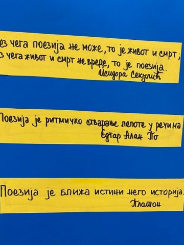 У Гучи су Томислав Јовановић I3 и Никола Луковић I3, уз помоћ професорке српског језика и књижевности, Неде Пуношевац, израдили пано који краси хол школе и упућује ученике у лепоте поезије.