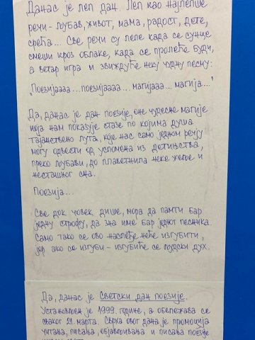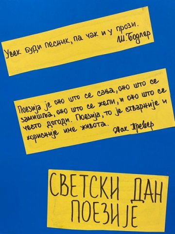 Средња школа „Драгачево“ обележила је Светски дан поезије, који се прославља се 21. марта. Установљен је од стране УНЕСКО-a са циљем промовисања и подстицања читања, писања и објављивања поезије широм света.