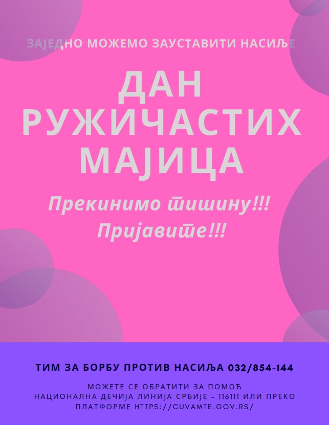 У складу са Програмом заштите од насиља, злостављања и занемаривања и програма спречавања дискриминације у школи Средња школа ,, Драгачево'' Гуча већ пету годину за редом обележава Дан розе мајица.