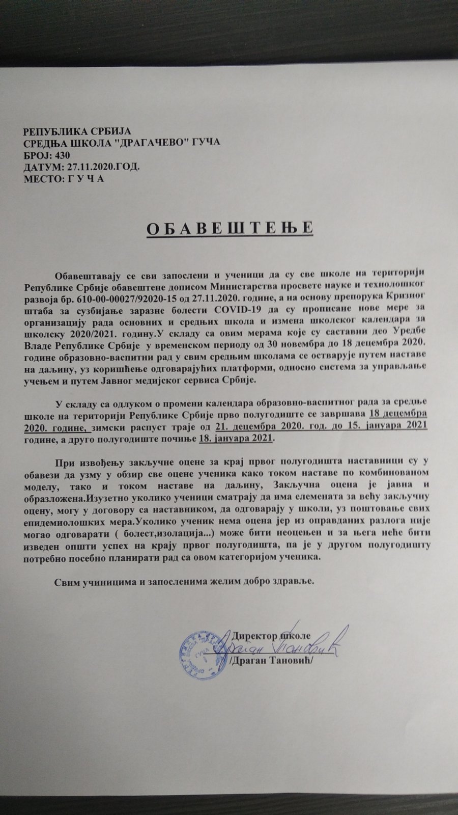 Средња школа "Драгачево" Гуча - НОВОСТИ